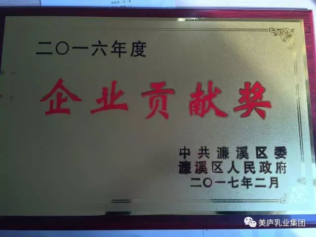 2017年2月13日,中共濂溪区委一届三次全体(扩大)会议正式召开。会议上对濂溪区2016年度有特别贡献的企业予以重点表彰,美庐乳业集团荣获“企业贡献奖”殊荣。